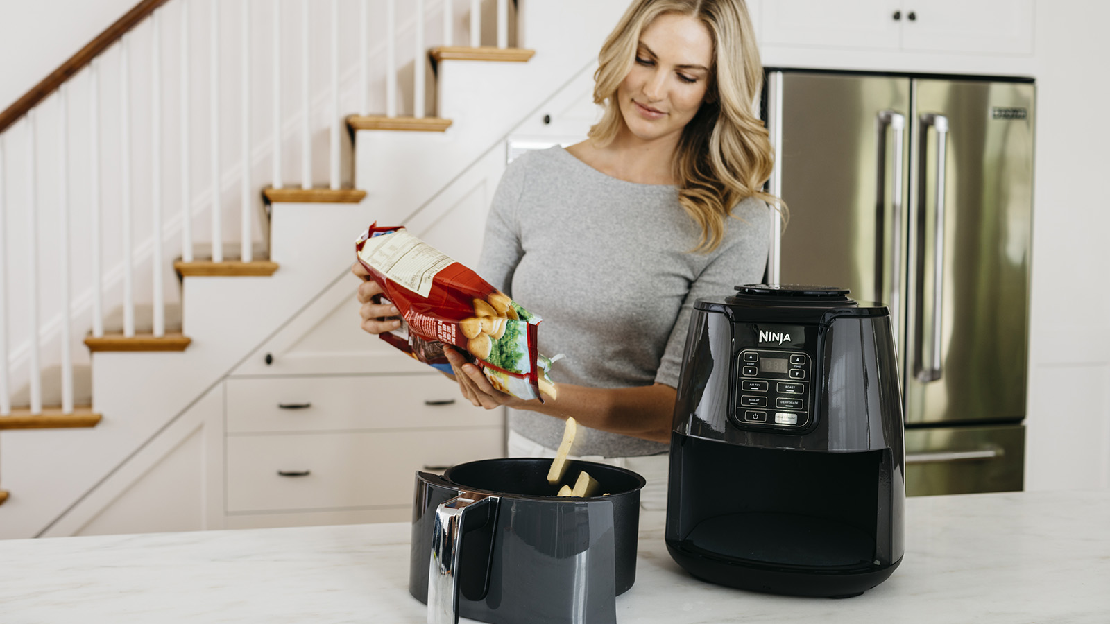 Cuoci i surgelati senza scongelarli, ottenendo piatti croccanti e dorati alla perfezione. Porta la cena in tavola in pochi minuti grazie ai programmi rapidi e personalizzabili della friggitrice ad aria Ninja, con comandi touch e flusso d'aria veloce.
