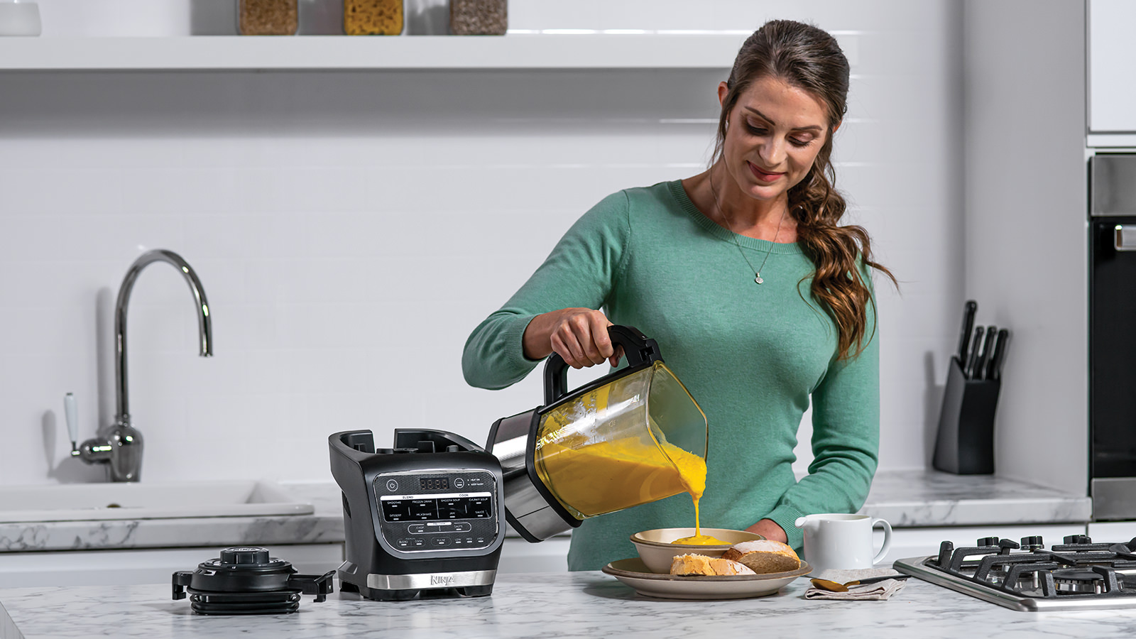 Con questa idea di Ninja, che frulla e cuoce al tempo stesso, puoi preparare velocemente e facilmente pietanze calde e fredde. Per zuppe e non solo: gusta una varietà di squisiti cibi e bevande, dai minestroni alle vellutate, dai sughi per la pasta alle marmellate fatte in casa, e poi dessert cocktail con ghiaccio e smoothie.
